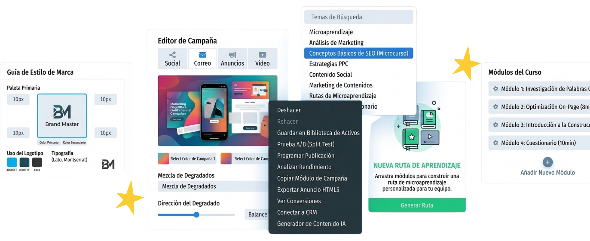Micro-apprentissage stratégique : Oubliez les cours interminables. Vous recevrez des capsules de connaissances pratiques, axées sur la résolution des problèmes spécifiques de votre marque dès aujourd'hui.